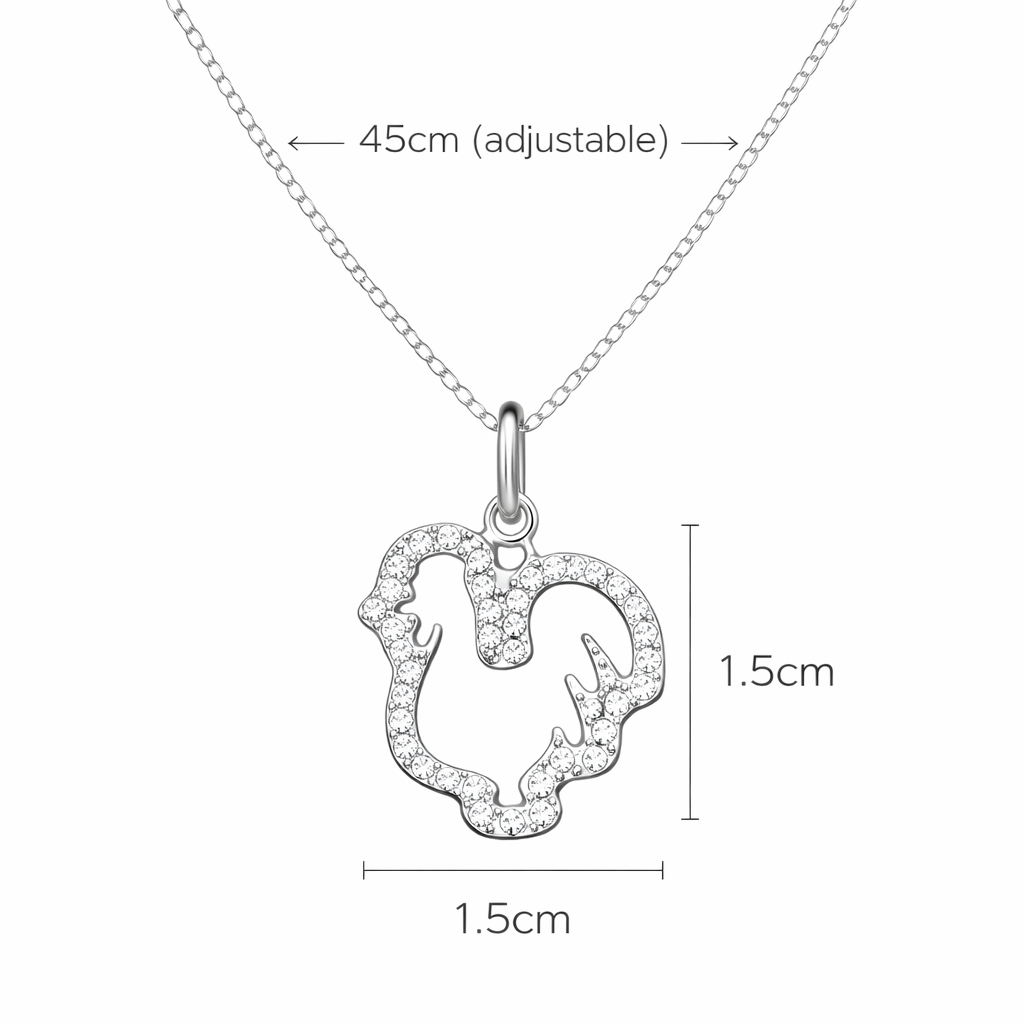 Inspired by the Chinese Zodiac Rooster, this elegant necklace symbolises confidence, diligence, and prosperity. The rooster is known for its keen awareness, courage, and ability to attract good fortune—making this piece both meaningful and stylish.