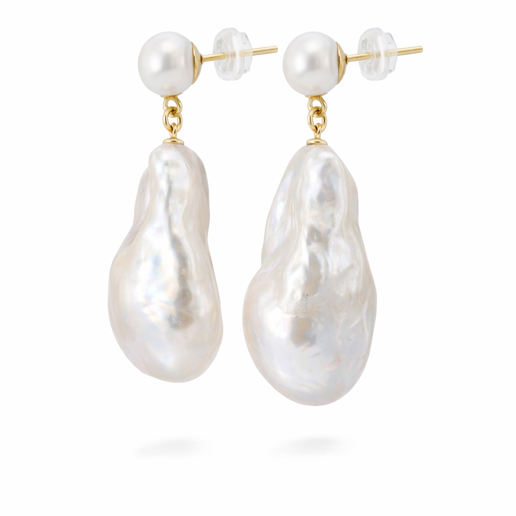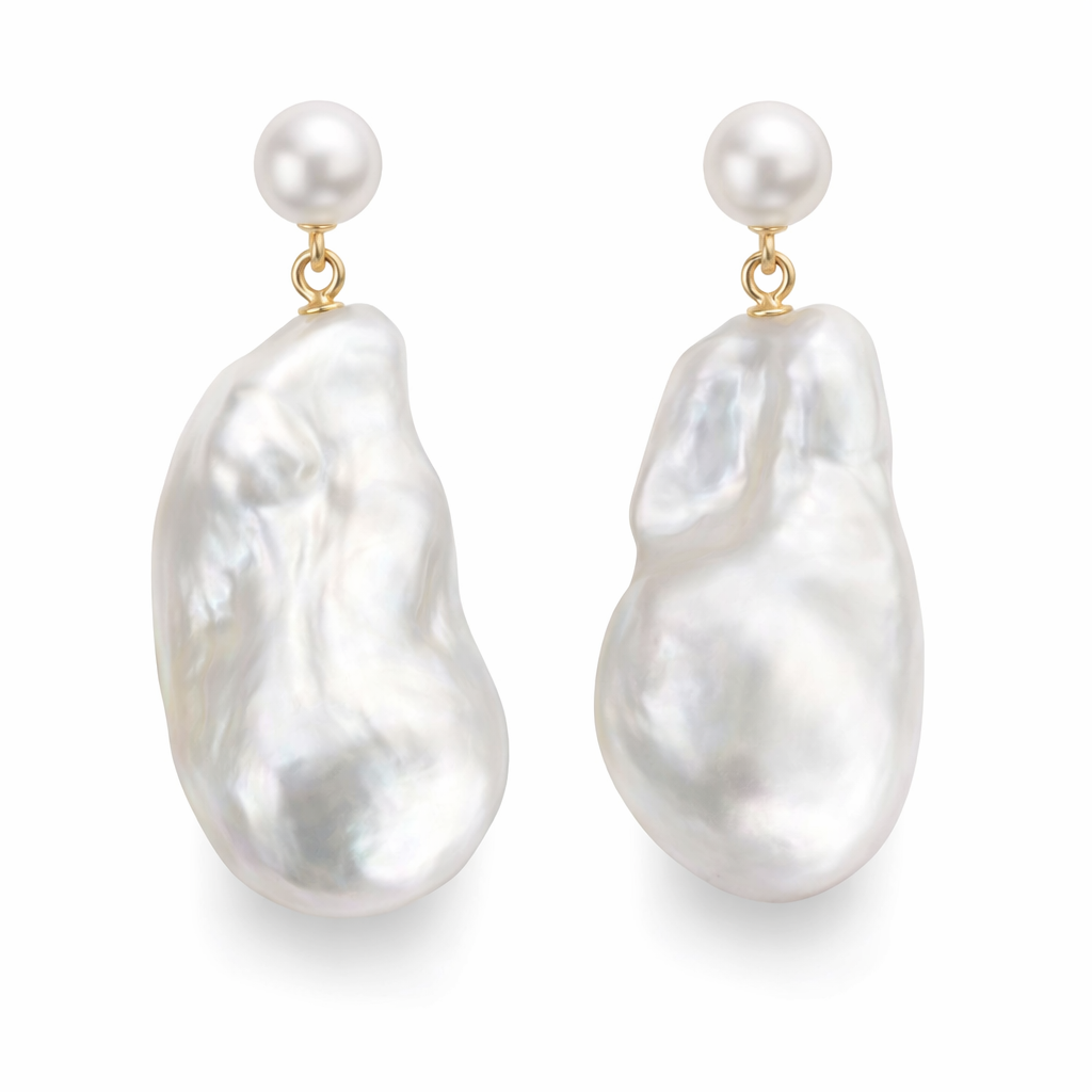 Elevate your everyday elegance with our Aurora Baroque Pearl Drop Earrings, featuring naturally sculpted freshwater pearls with luminous organic beauty.