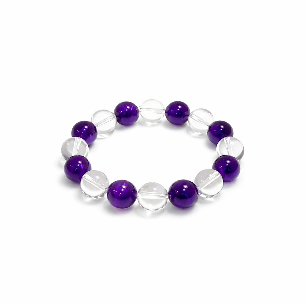 A calming crystal bracelet designed to support inner peace, spiritual awareness, and mental clarity. The Violet Serenity Crystal Bracelet combines soothing 12mm Amethyst with luminous 12mm Clear Quartz — creating a gentle yet powerful energy that helps quiet the mind while enhancing focus and intention.