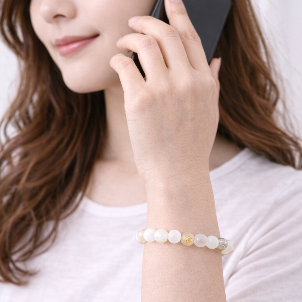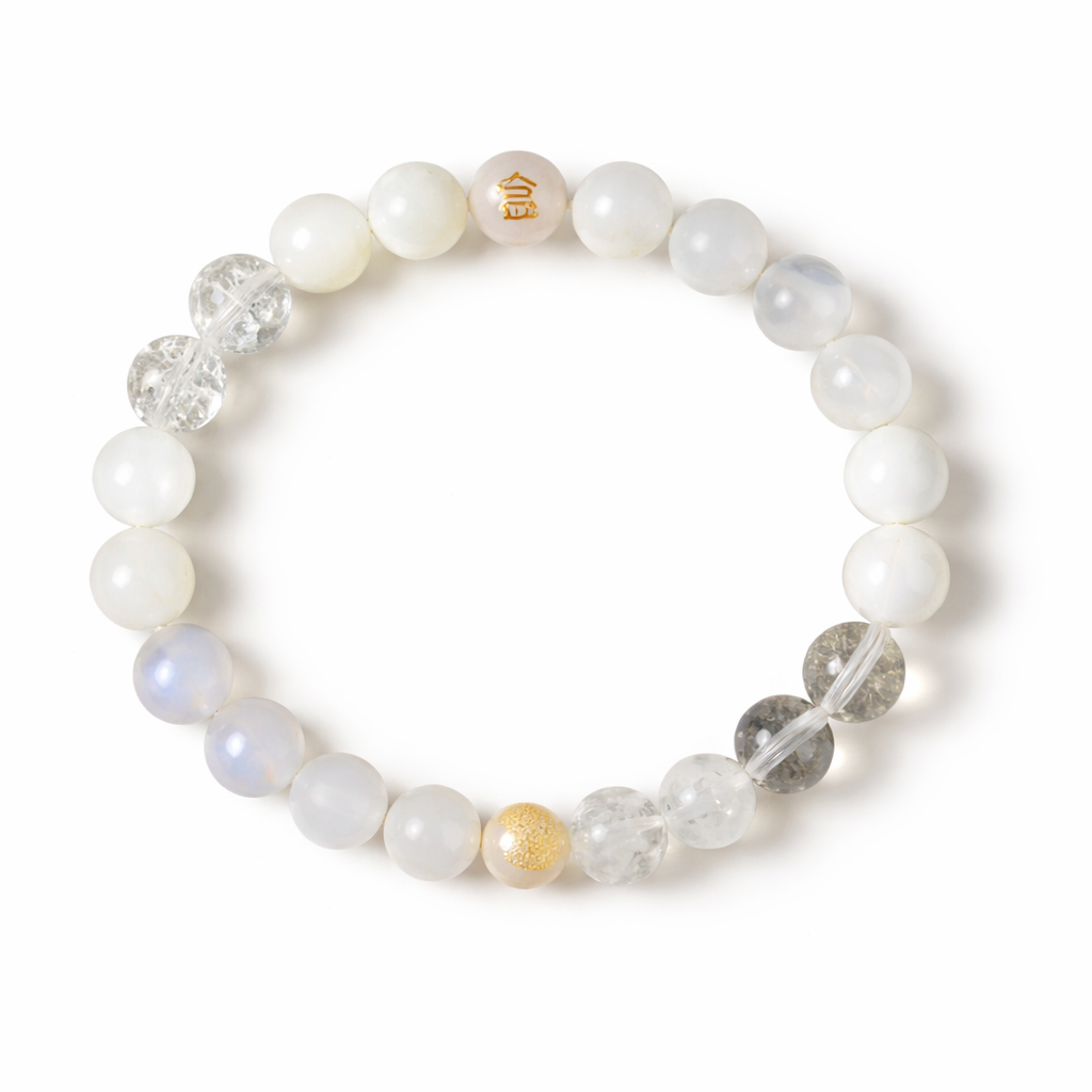 Designed to cultivate mental clarity and inner strength, this bracelet blends traditional Eastern wisdom with modern elegance. Its soft white and translucent tones make it a refined accessory for daily wear, meditation, or as a meaningful gift.