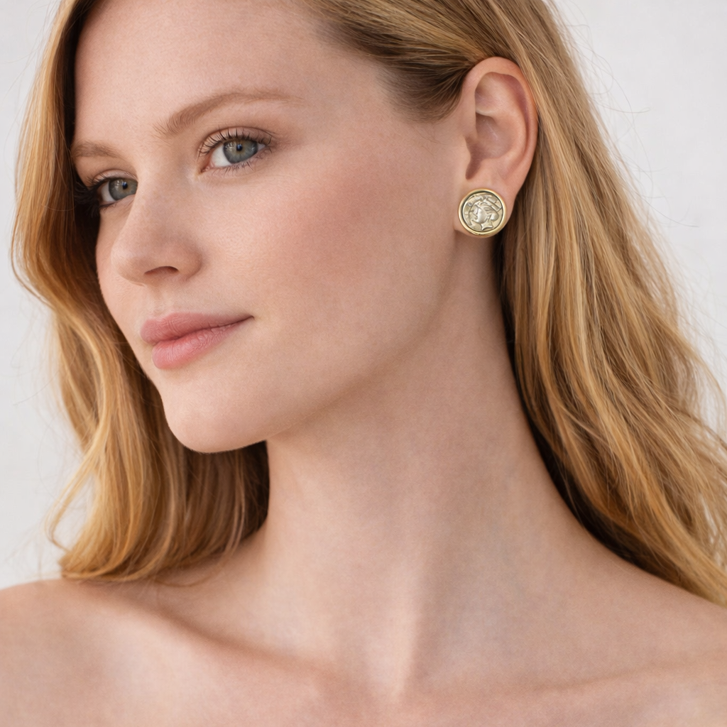 Perfect for lovers of history-inspired jewelry, the Ancient Coins Earrings blend classical artistry with contemporary design—an elegant addition to any jewelry collection.
