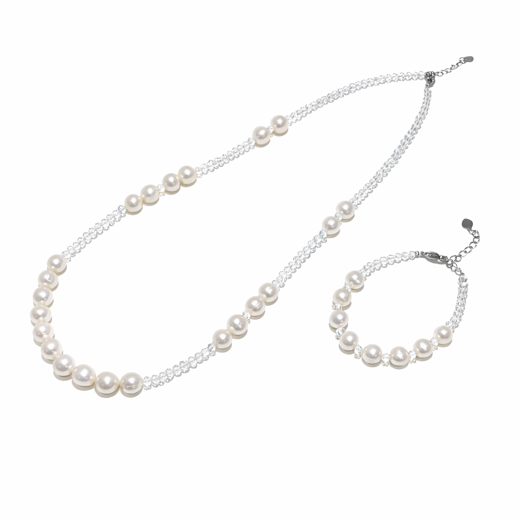 Inspired by the quiet beauty of early spring mornings, the Easter Dew Pearl Necklace captures the delicate moment when soft sunlight meets fresh morning dew. Luminous freshwater pearls are paired with sparkling clear quartz crystals, reflecting the purity, renewal, and gentle light that symbolise the Easter season.