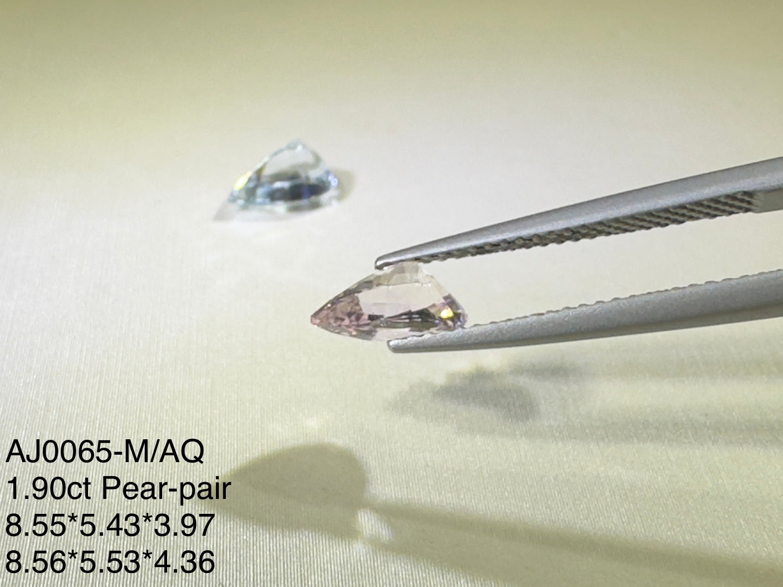 1.90ct natural pear cut Morganite/Aquamarine-Pair