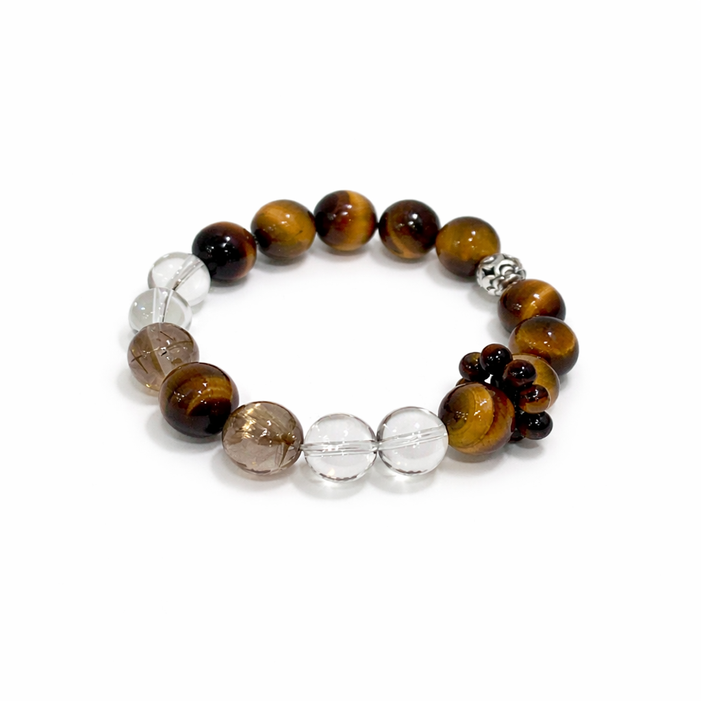 Tiger Eye is known for enhancing courage, determination, and protective strength. Yellow Rutilated Quartz is believed to attract abundance while clearing energetic blockages and supporting inspired action. Clear Quartz acts as an energy amplifier, helping cleanse negativity and strengthen intentions.